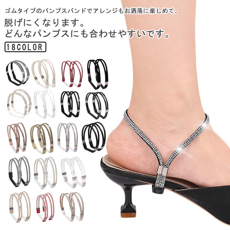 | ◆ゴムタイプで伸縮性があります。 ◆取り付けマジックテープ付き ◆ゴムタイプのパンプスバンドでアレンジもお洒落に楽しめて、脱げにくなります。 どんなパンプスにも合わせやすいです。 | |