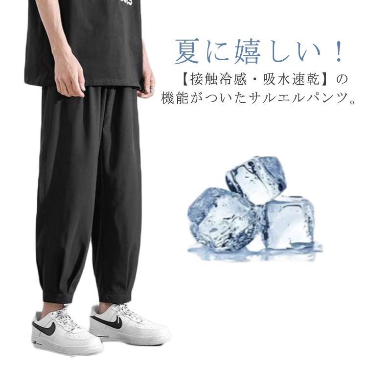 | 夏に嬉しい!【接触冷感・吸水速乾】の機能がついたサルエルパンツ。 触れるとヒンヤリ、さらりとした着心地で快適な履き心地。 裾に施したタックで広がりすぎず、脚のラインをきれいに見せてくれます。 ウエストはゴム仕様で、窮屈感なく楽な履き心地。 はき心地の良さが向上し、家でも仕事でもスポーツでも快適にはけて、1本で何役もこなせる高機能な万能パンツ。 | |