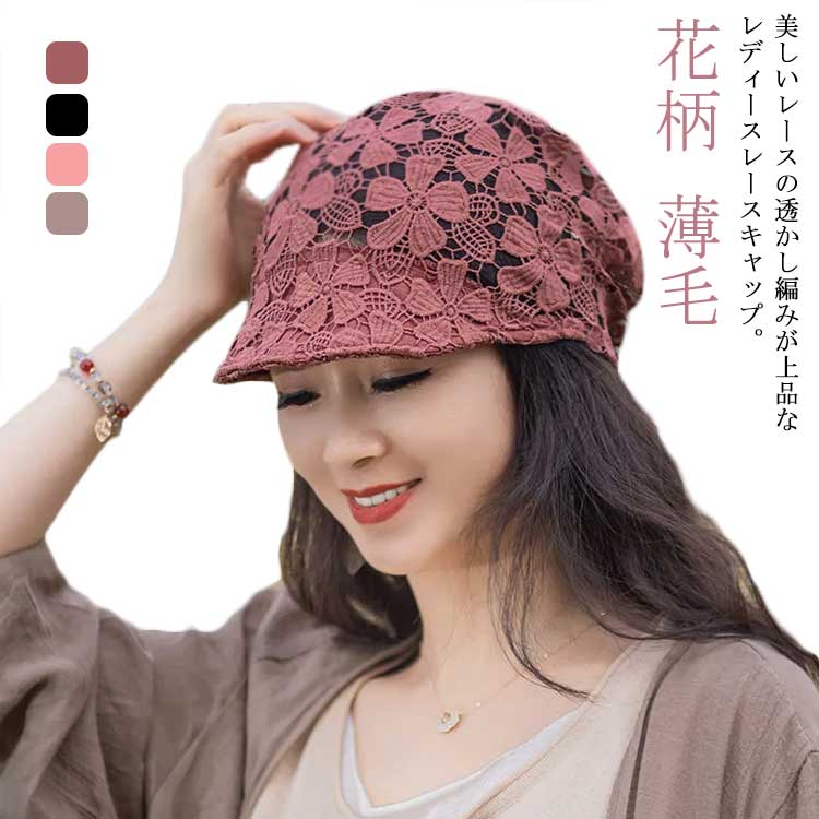 ハット レディース 帽子 ワッチキャップ 総レース 花柄レース サマーレースキャップ つば広 透け感 ジャガードレース 薄手 花柄 刺繍 薄毛 隠し