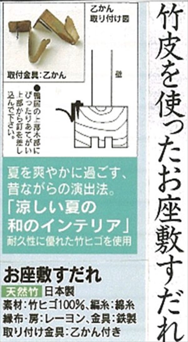 高級すだれの証、竹皮を使用したお座敷すだれ。耐久性に優れた竹皮