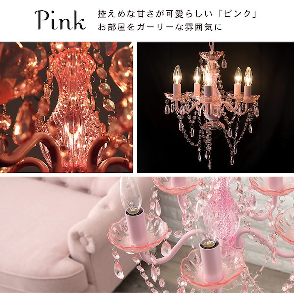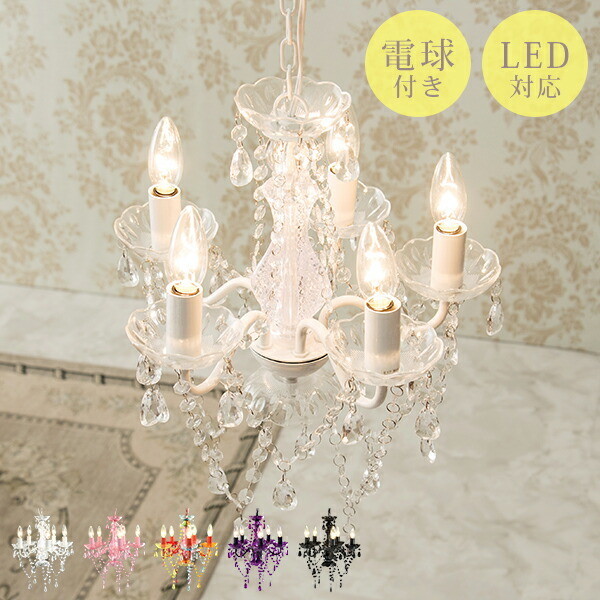 NL-8605 シャンデリア 5灯 照明 電気 小さめ リビング 雑貨 お洒落 ゴージャス LED対応 設置簡単 電球付き チェーン パープル ピンク マルチ クリアー ブラック