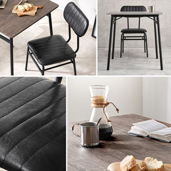 素材 フレーム:スチール、天板:合成樹脂化粧繊維板(塩化ビニル)、チェア張地:合成皮革