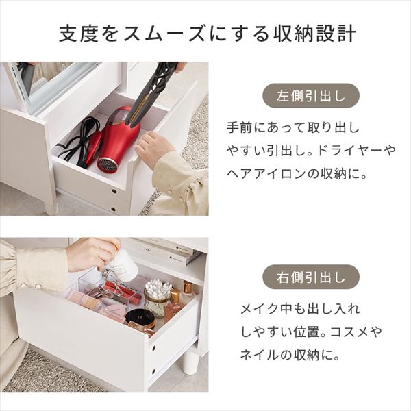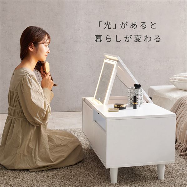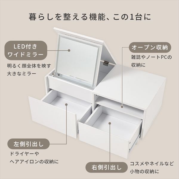 MD-5842WH ロードレッサー テーブル ドレッサー LED ライト付き メイク コスメ ドライヤー たっぷり収納