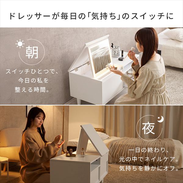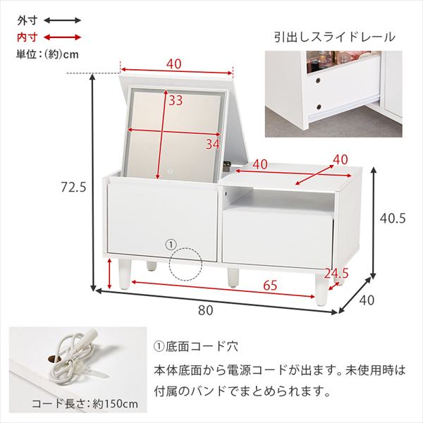 LEDライト付き ロードレッサー 幅80cm ミラー ドレッサー ドレッサー 鏡台 MD-5842WH ロードレッサー テーブル ドレッサー LED ライト付き メイ