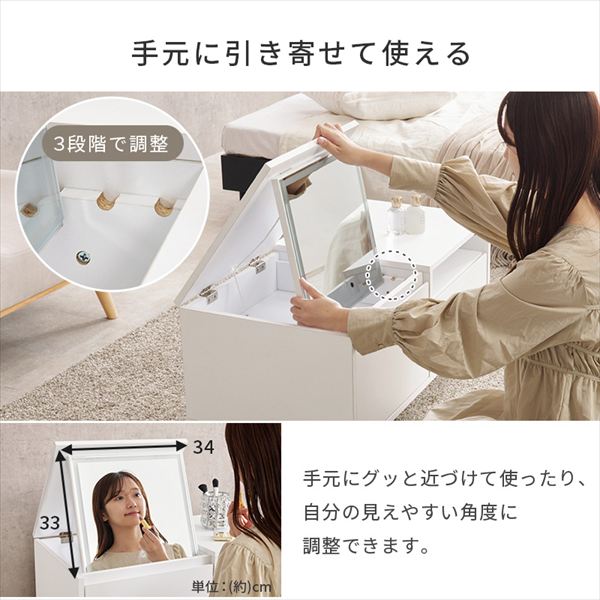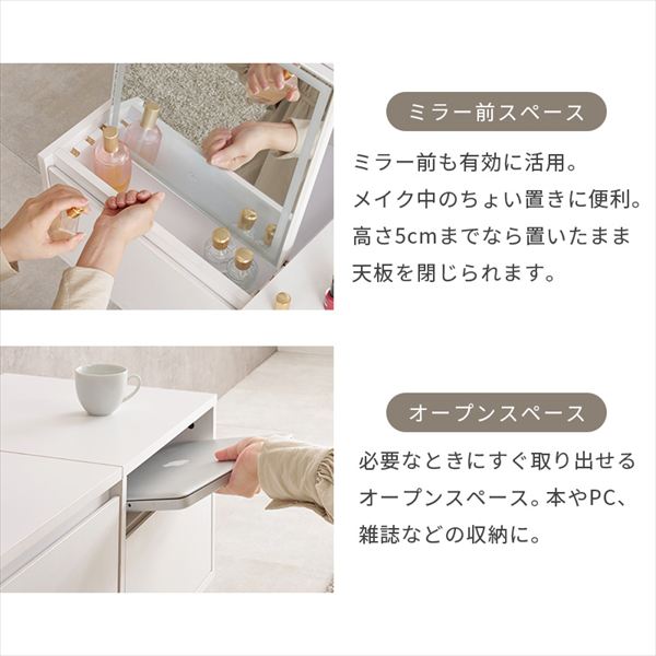 天板を閉じればテーブルとして使えるドレッサー。