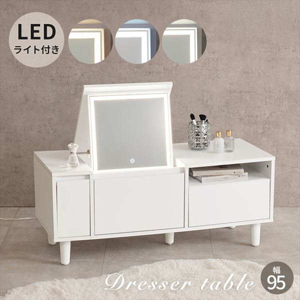 LEDライト付き ロードレッサー 幅95cm ミラー ドレッサー ドレッサー 鏡台 MD-5843WH ロードレッサー テーブル ドレッサー LED ライト付き メイ