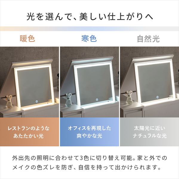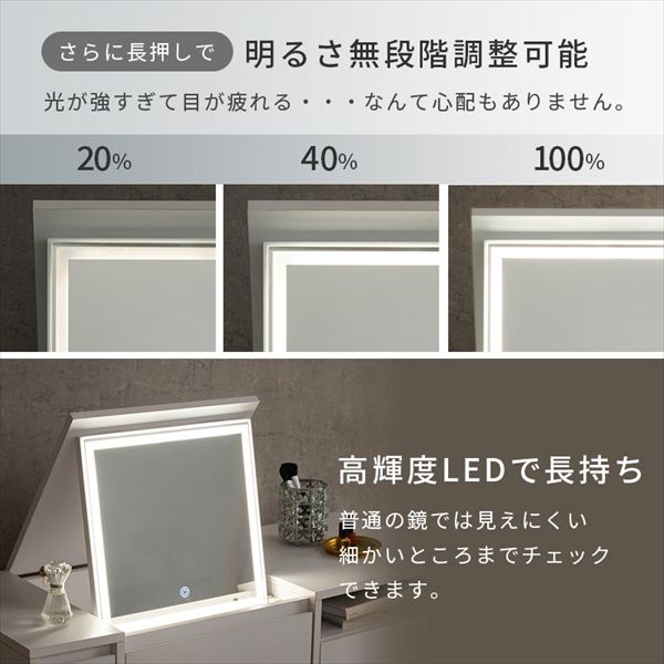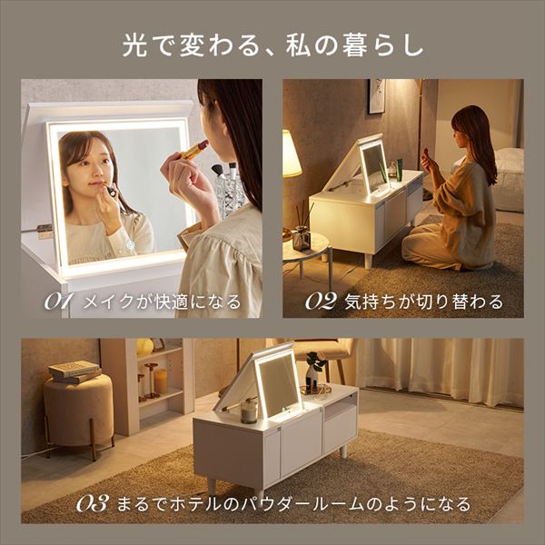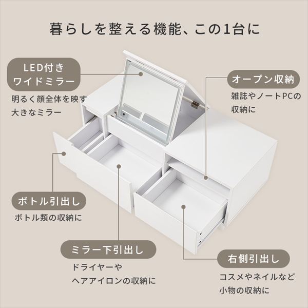 MD-5843WH ロードレッサー テーブル ドレッサー LED ライト付き メイク コスメ ドライヤー たっぷり収納