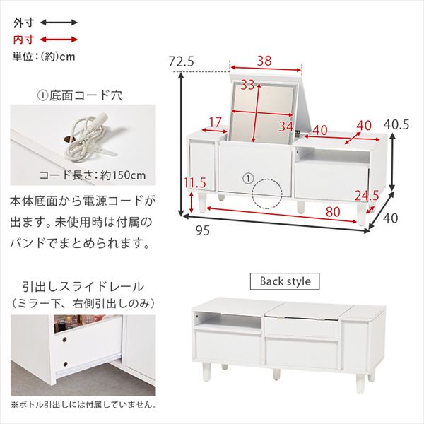 サイズ (約)幅95×奥行40×高さ40.5cm