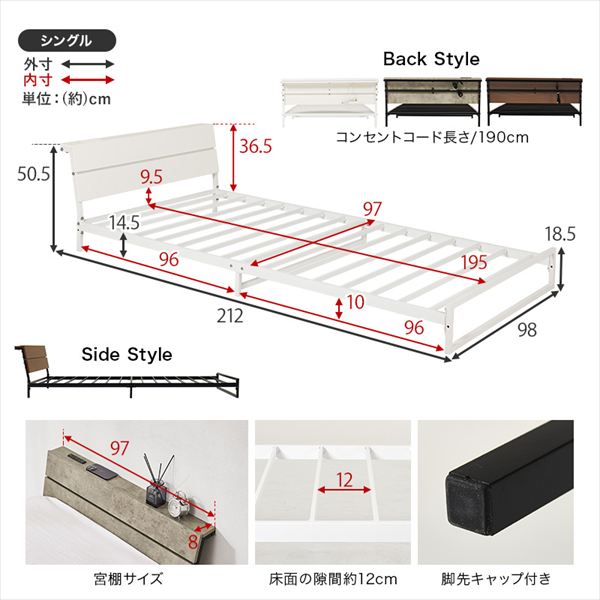 サイズ ベッド:(約)幅98×奥行212×高さ50.5×座面高14.5cm