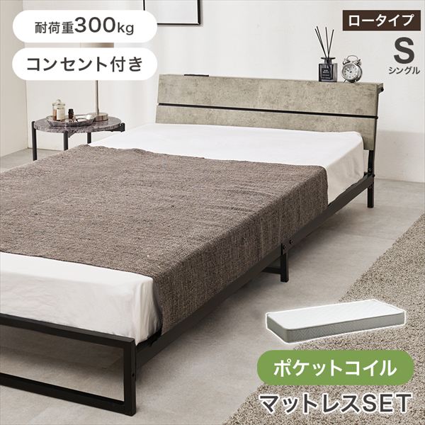商品名:スチールフレーム ロータイプ シングルベッド【ポケットコイルマットレスセット】