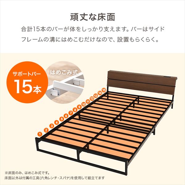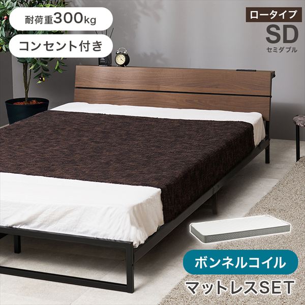商品名:スチールフレーム ロータイプ セミダブルベッド【ボンネルコイルマットレスセット】