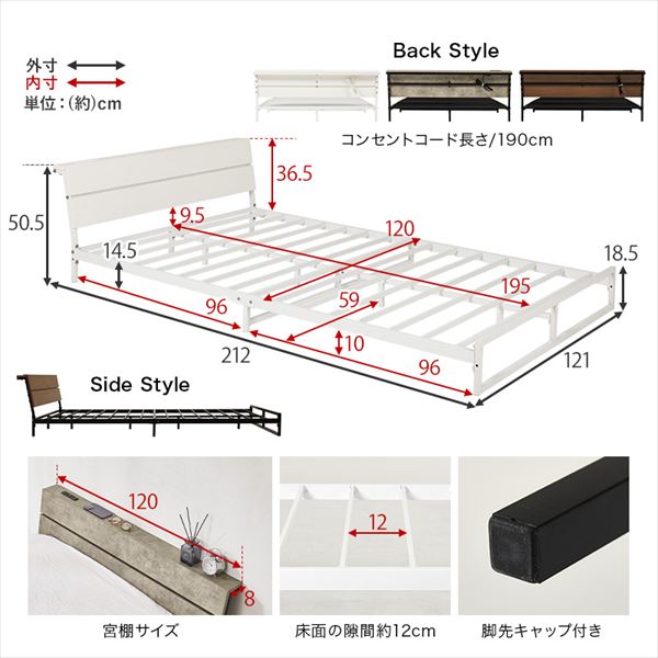 サイズ ベッド:(約)幅121×奥行212×高さ50.5×座面高14.5cm