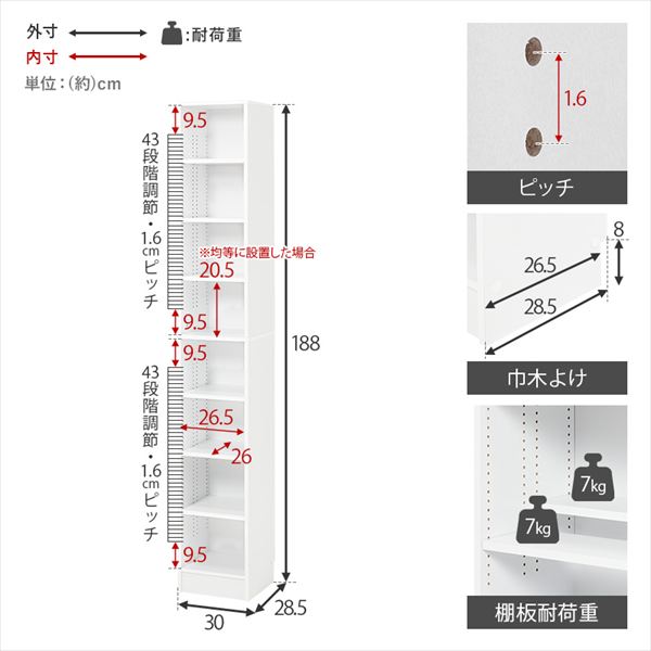 サイズ (約)幅30×奥行28.5×高さ188cm