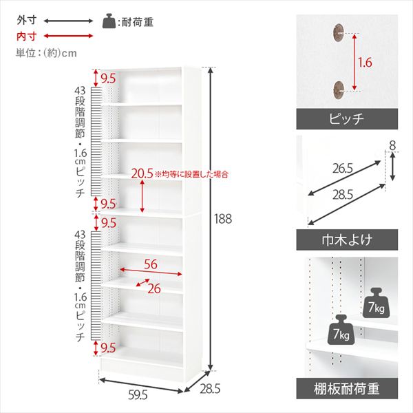 サイズ (約)幅59.5×奥行28.5×高さ188cm