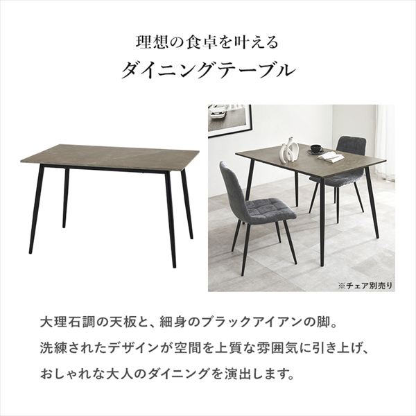 BT-8541MGY ダイニングテーブル モダン インテリア グレー 大理石調 天板 細身 ブラックアイアン 脚 おしゃれ 大人 ダイニング アジャスター付