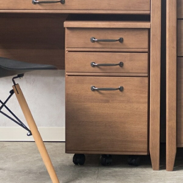 こちらはデスク内側に収められる高さのワゴンで、キャスター付きで移動も楽々。