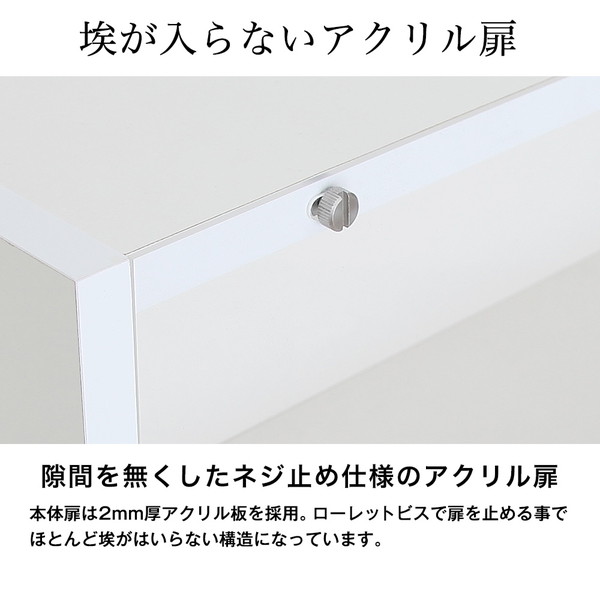 透明度の高いアクリル扉が、ホコリや汚れから車両を守りながら、コレクションを引き立てます。