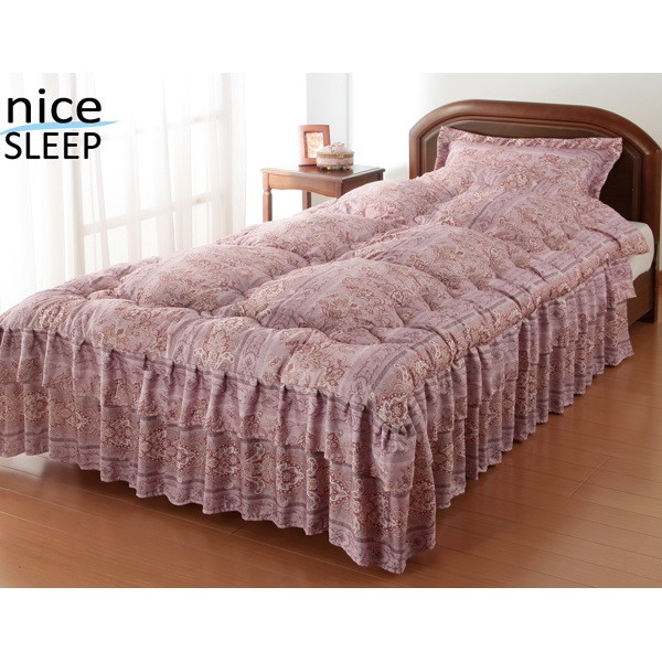 1年中快適!同柄の枕カバーが付いたシルク綿入りダブルフリルベッド布団。