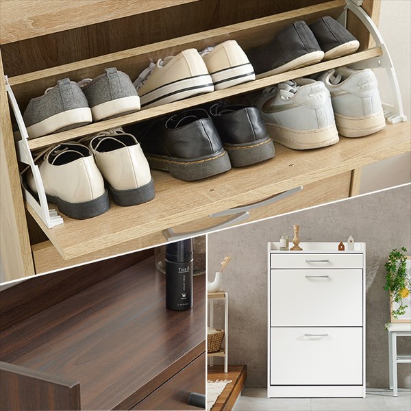 引出し付きで靴のお手入れ道具や玄関小物を収納可能
