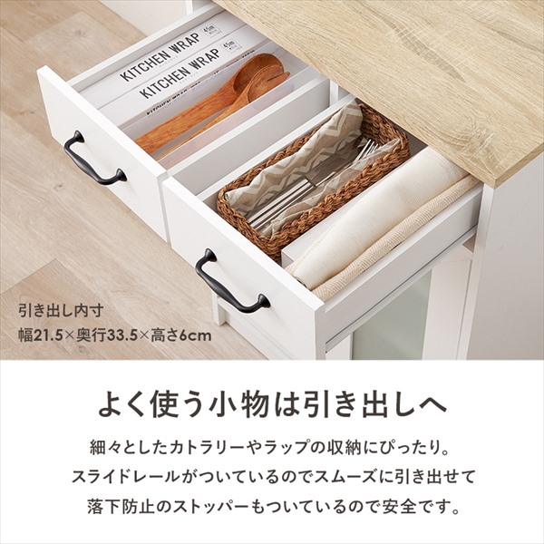 引出し付きで収納しやすく、作業台としても使いやすい高さがポイント