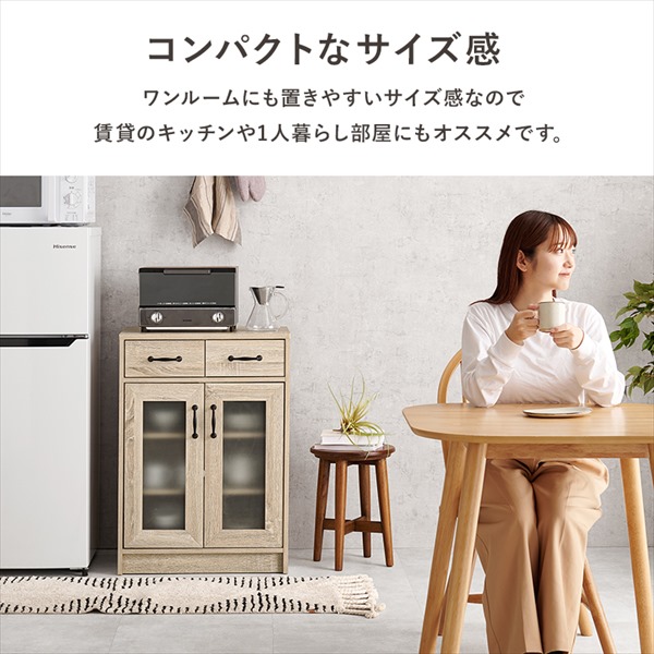 \レビューでプレゼント/キッチンラック 扉収納タイプ 幅58cm 収納家具 キッチン収納 食器棚 キッチンボード RCC-1636 キッチン