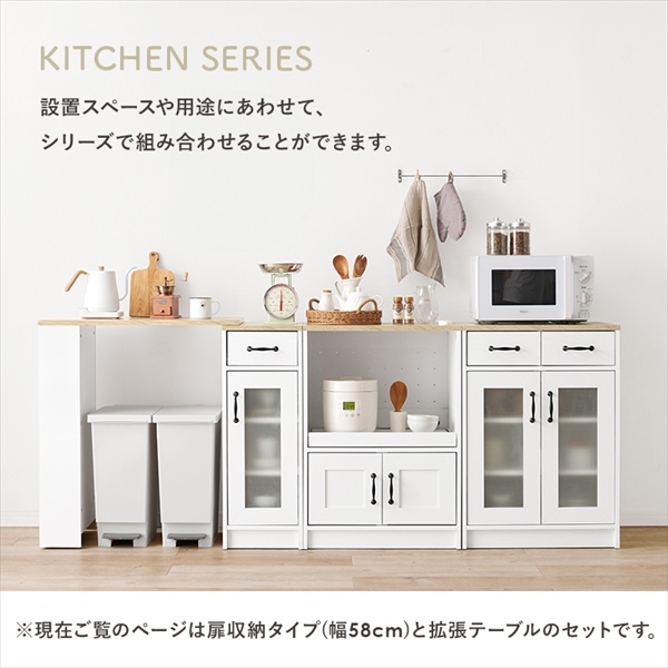 こちらは[キッチンラック 扉収納タイプ 幅58cm 伸縮キッチンカウンターSET]になります。