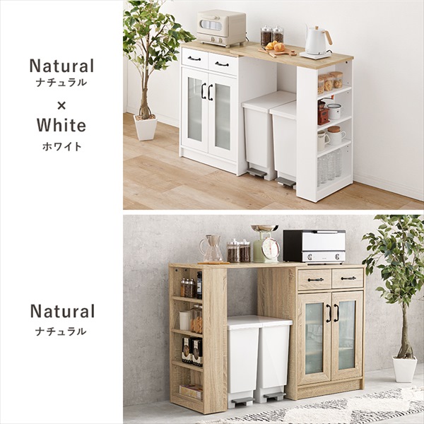 \レビューでプレゼント/キッチンラック 扉収納タイプ 幅58cm 伸縮キッチンカウンターSET 収納家具 キッチン収納 キッチンカウンター