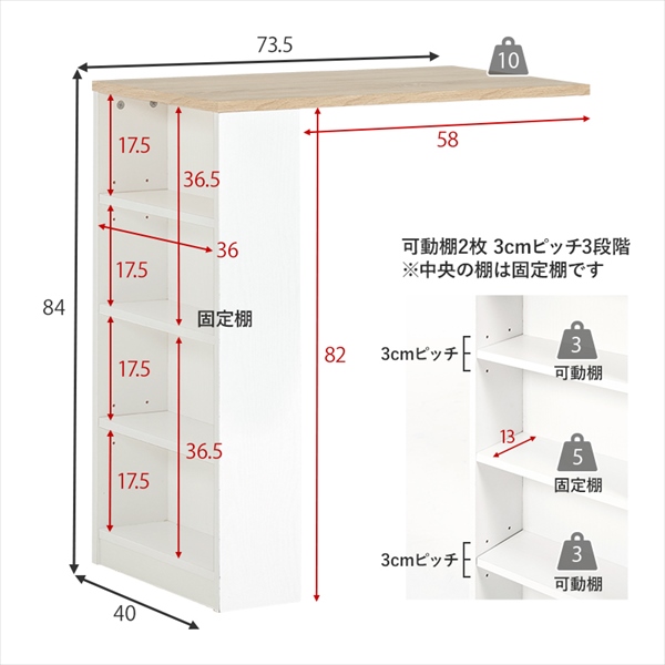 サイズ:(約)幅73.5〜121.5×奥行40(取手含む:43)×高さ84cm