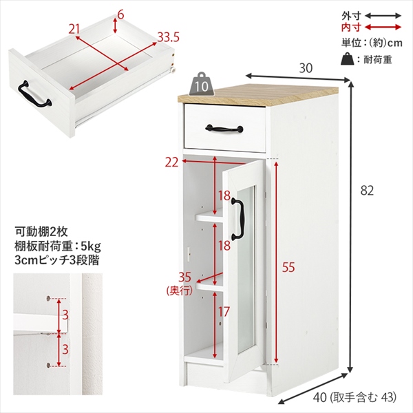 商品名:キッチンラック 扉収納タイプ 幅30cm スリムタイプ