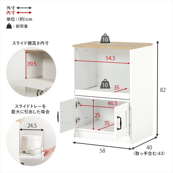 >スライド棚タイプ 幅58cm 伸縮キッチンカウンターSET