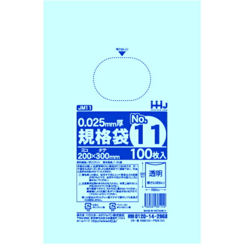 ハウスホールドジャパン(HHJ) 規格袋11号 透明 100枚 0.025 【品番:JM11】