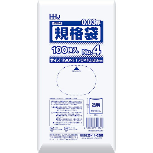 ハウスホールドジャパン(HHJ) 規格袋04号 透明 100枚 0.030 【品番:JS04】