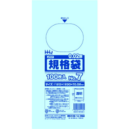 ハウスホールドジャパン(HHJ) 規格袋7号 透明 100枚 0.020 【品番:JT07】