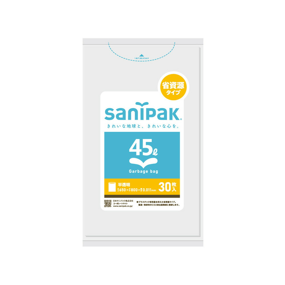 日本サニパック(sanipak) サニパックポリ袋 省資源 45L 半透明 30枚 0.011mm 【品番:UH49】