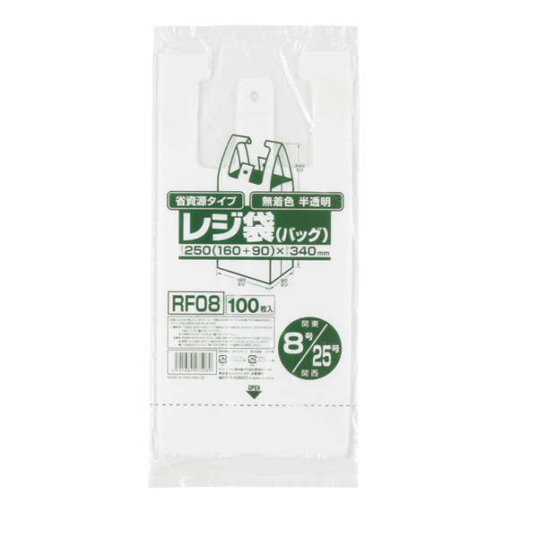 ジャパックス(JAPACK's) 業務用レジ袋 省資源タイプ(東日本08号/西日本25号) 半透明 100枚 【品番:RF08】