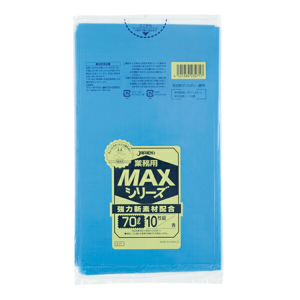 ジャパックス(JAPACK's) 業務用MAX 70L 青 10枚 【品番:S-71】