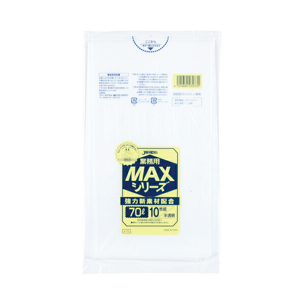 ジャパックス(JAPACK's) 業務用MAX 70L 半透明 10枚 【品番:S-73】
