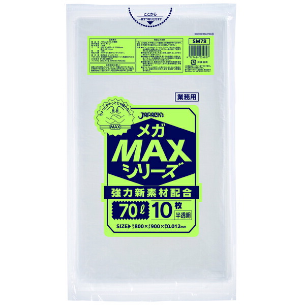 ジャパックス(JAPACK's) 業務用MAX 70L 半透明 10枚 【品番:SM78】