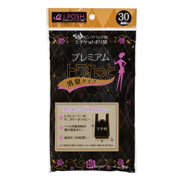 ジャパックス(JAPACK's) プレミアム トワれっと エチケットポリ袋 消臭成分配合 手付きタイプ 黒 30枚 【品番:SN04】