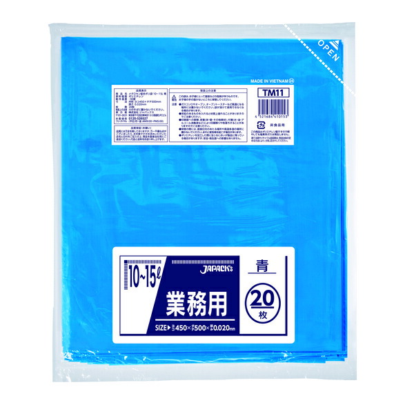 ジャパックス(JAPACK's) 業務用 小型 10L〜15L 青 20枚 【品番:TM11】