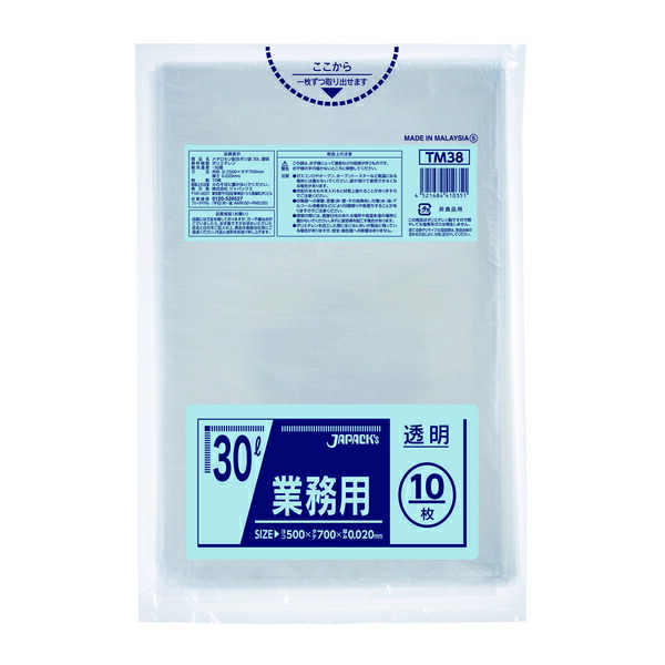 ジャパックス(JAPACK's) 業務用スタンダード 30L 透明 10枚 【品番:TM38】