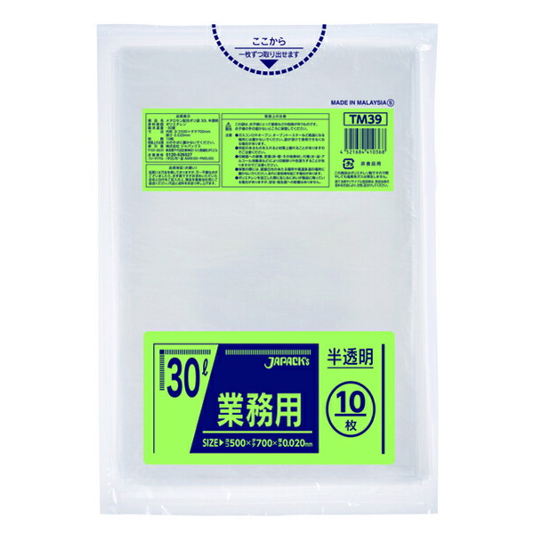 ジャパックス(JAPACK's) 業務用スタンダード 30L 半透明 10枚 【品番:TM39】