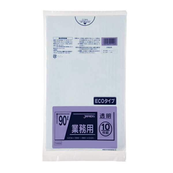 ジャパックス(JAPACK's) 業務用スタンダード 90L 透明 10枚 【品番:TM958】