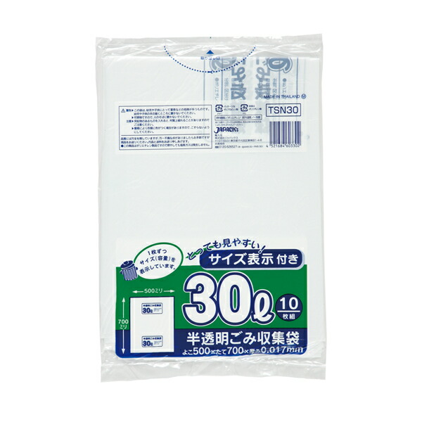ジャパックス(JAPACK's) 容量表示入り 30L 白半透明 10枚 【品番:TSN30】