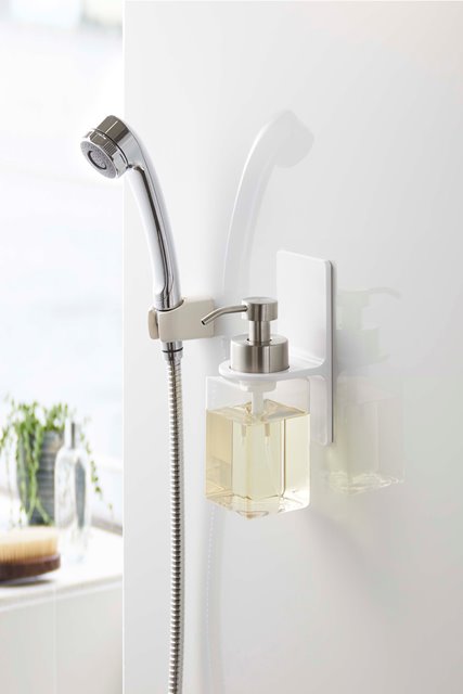 ●マグネットが付く浴室壁面に簡単取り付けのディスペンサーホルダー。