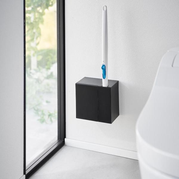 ●流せるトイレブラシのハンドルと替えブラシをまとめて壁に浮かせて収納できます。