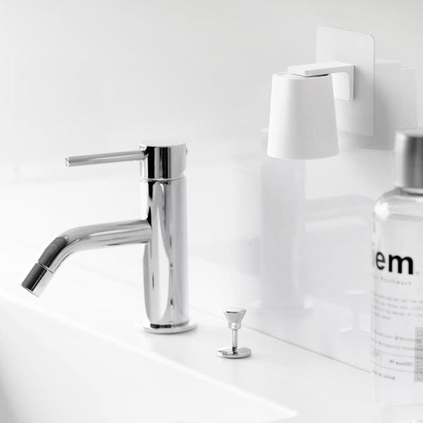●フィルムフックで簡単に取り付けができ、タンブラーを浮かせて収納することができるのでぬめらず衛生的。