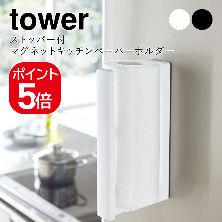 山崎実業 tower ストッパー付マグネットキッチンペーパーホルダータワー 4903208033985 4903208033992 ホワイト ブラック 3398 3399
