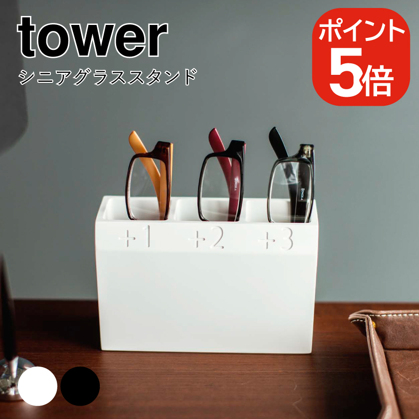 山崎実業 tower シニアグラススタンド タワー ホワイト ブラック 4225 4226 メガネスタンド 収納 老眼鏡スタンド メガネケース