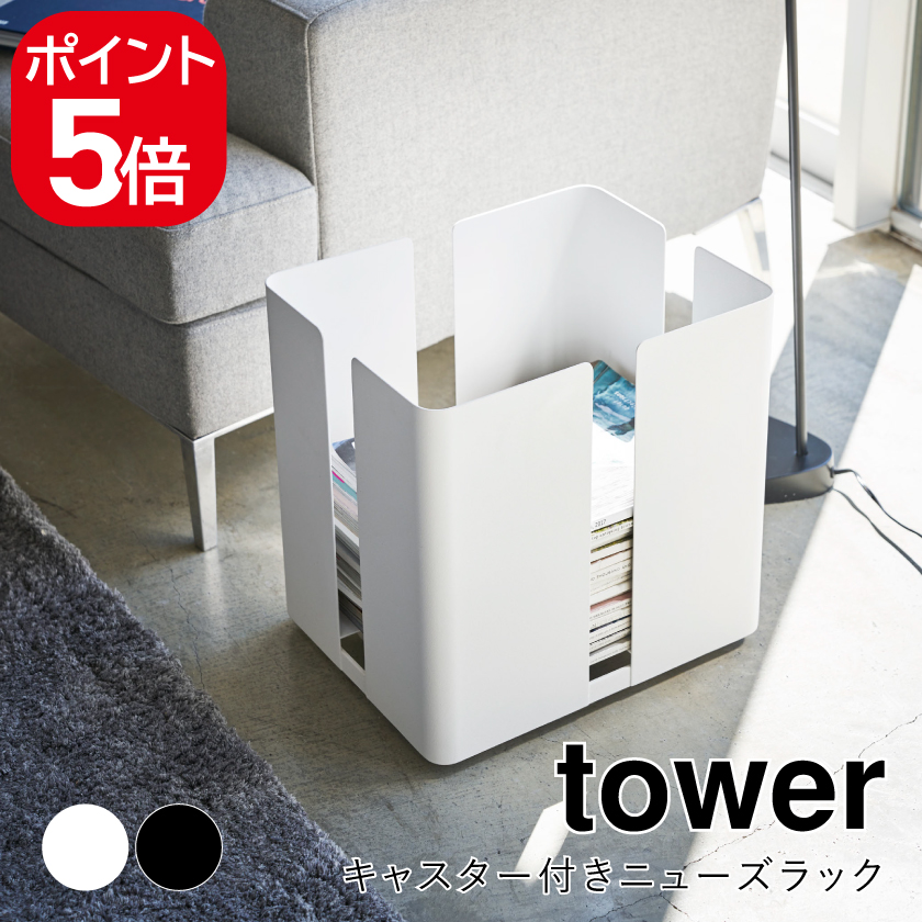 山崎実業 キャスター付きニューズラック タワー 4903208047630 4903208047647 ホワイト ブラック 4763 4764 tower